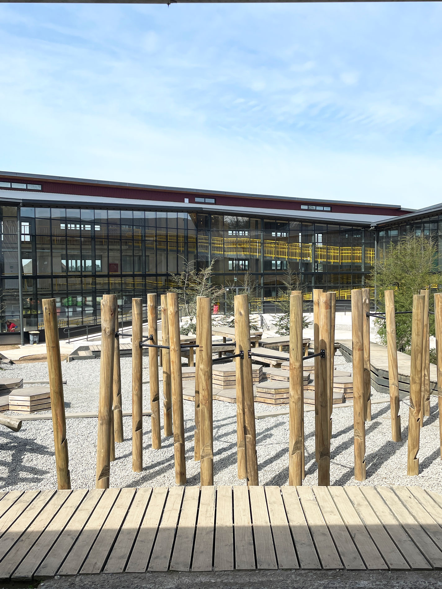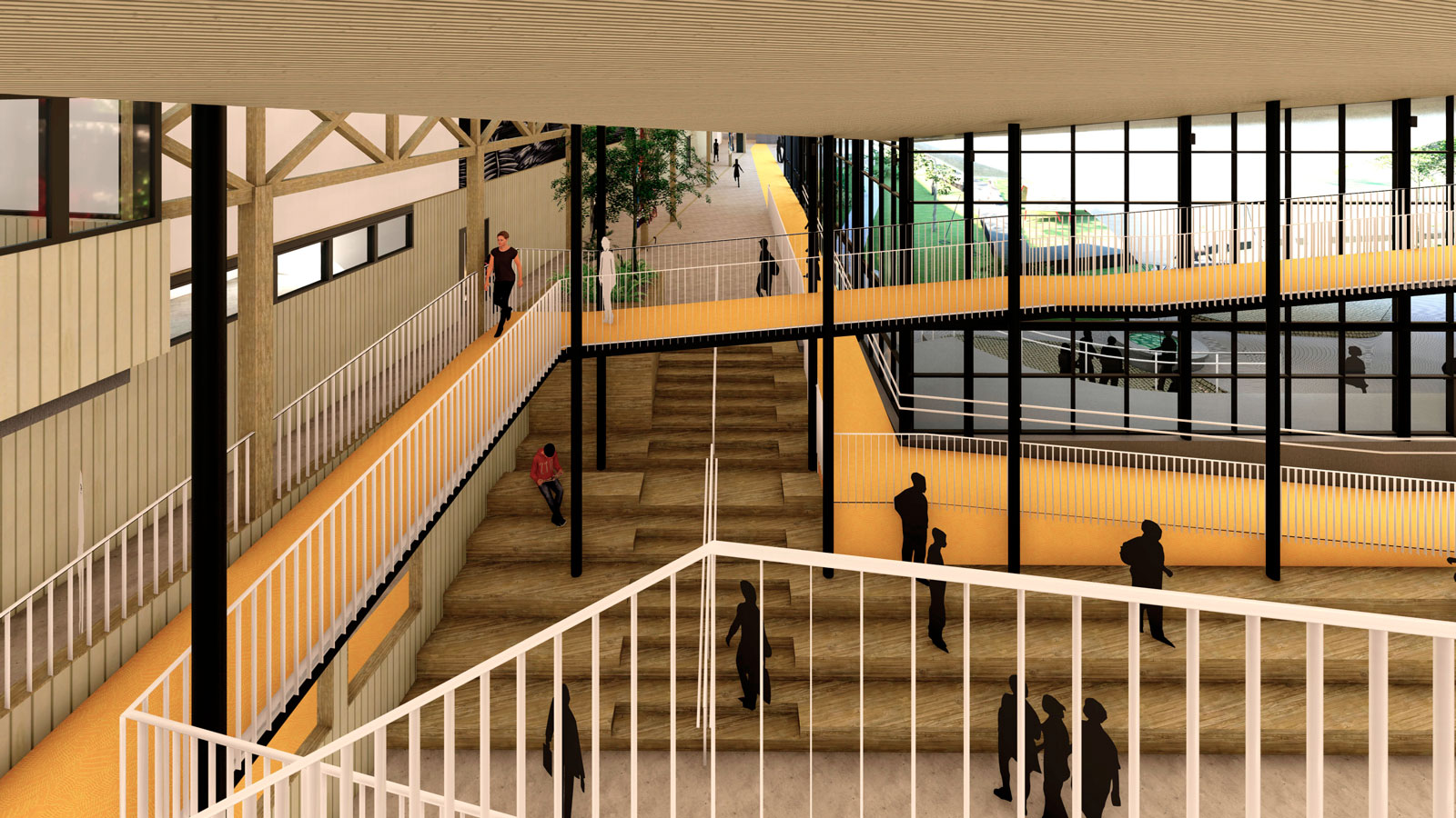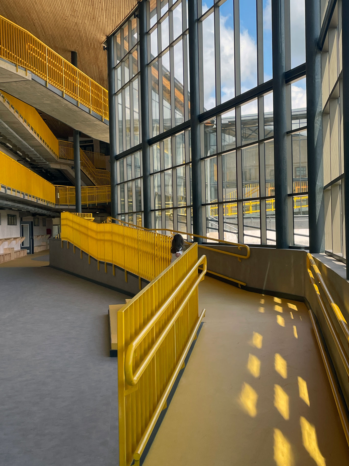 «Los detalles, no son los detalles» Cada decisión y elemento contiene un mensaje directo o subconsciente. Nos relacionamos y entendemos el mundo por nuestros sentidos y en un espacio pensado para la exploración y la creatividad, los niños absorben todo lo que los rodea y lo interpretan para su mundo. De todos los sentidos, nuestro mayor cuidado lo ponemos en el interoceptivo, que nos indica nuestro grado de confort con el entorno, (temperatura, luz, ruido, texturas, olores, colores, materiales, etc.) Buscamos crear las condiciones optimas naturales y emocionales para facilitar el aprendizaje. Crear condiciones de bienestar, multiplica la disposición para explorar, colaborar y aprender. En esta etapa de ampliación, se suman salas de clase flexibles y conectables, interiores y exteriores, distintos patios cubiertos cerrados y abiertos y las bibliotecas con sus destinitos espacios y usos posibles, con muebles, colores, texturas y rincones estimulantes para la lectura y el estudio. Todo conectado por escaleras y rampas que conectan los niveles y dan espacio para la conversación, la respiración y la integración.