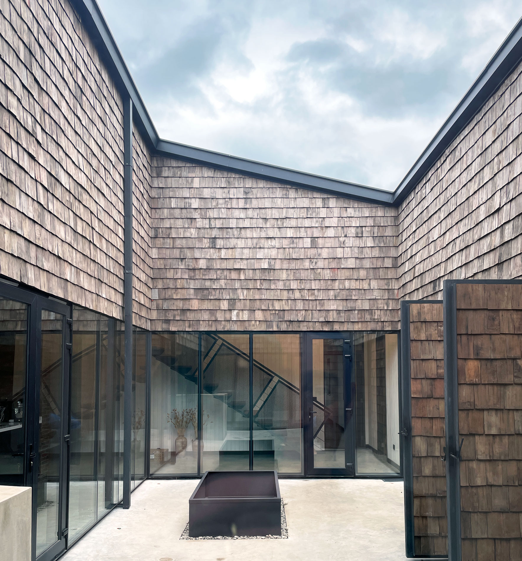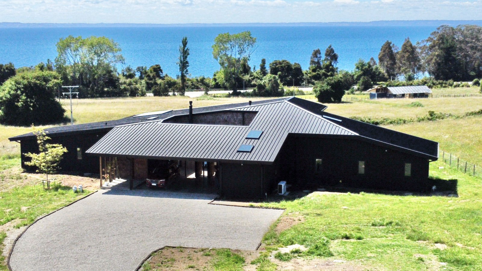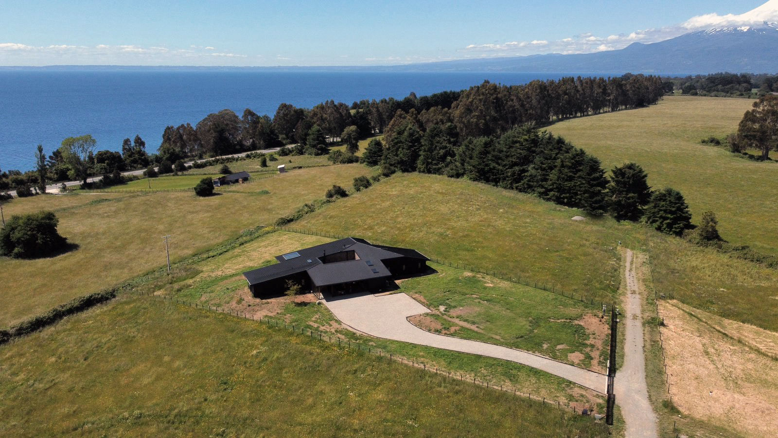 Al sur del lago Llanquihue, sobre una loma con vista al imponente volcán Osorno y al lago, la casa Los Riscos define una cota como plataforma que se amarra al terreno por el sur y despega hacia el norte dando espacio la plataforma de la piscina. El techo agalponado cubre toda la casa que se estructura en torno a un patio de luz central, protegido del viento y espacio intermedio conector.