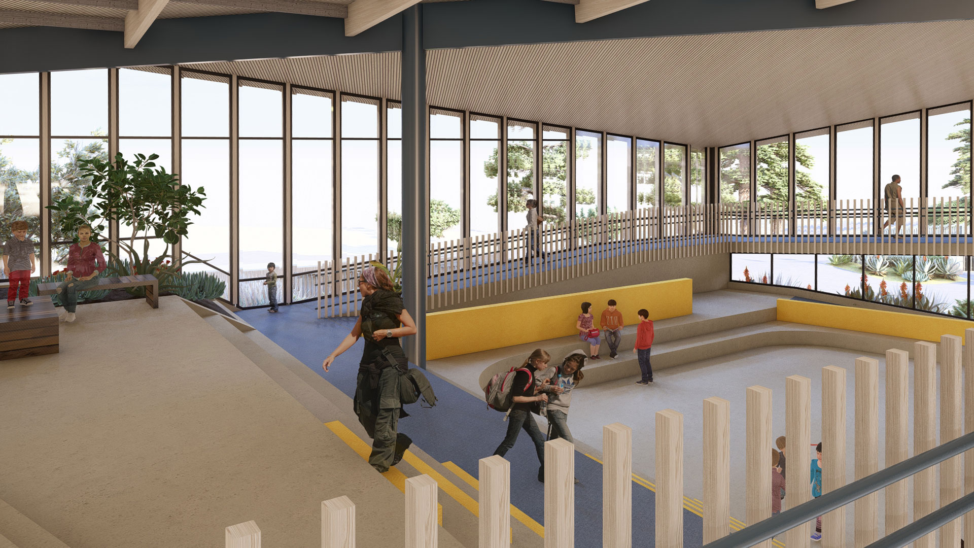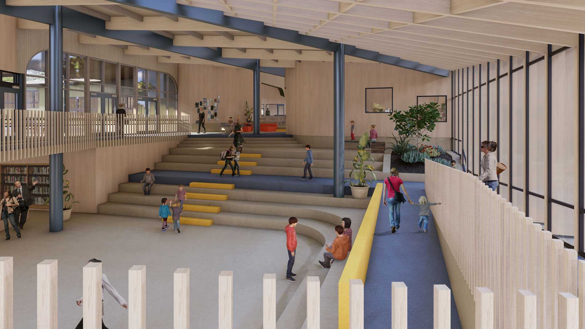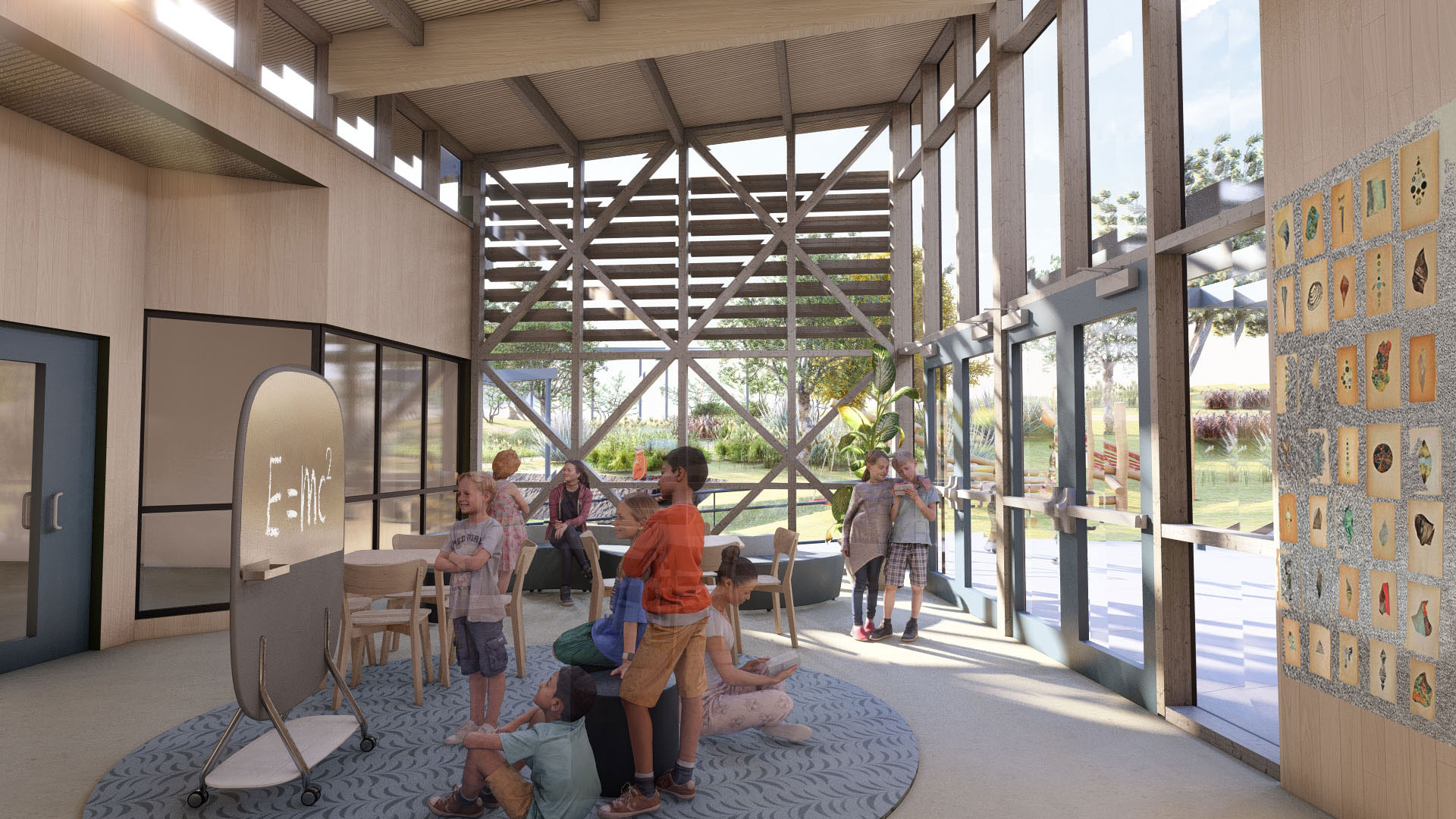 Learning floors son el corazón del proyecto, conectando las aulas con las áreas comunes y patios exteriores, fomentando la autonomía de los estudiantes y la interacción constante con sus tutores.