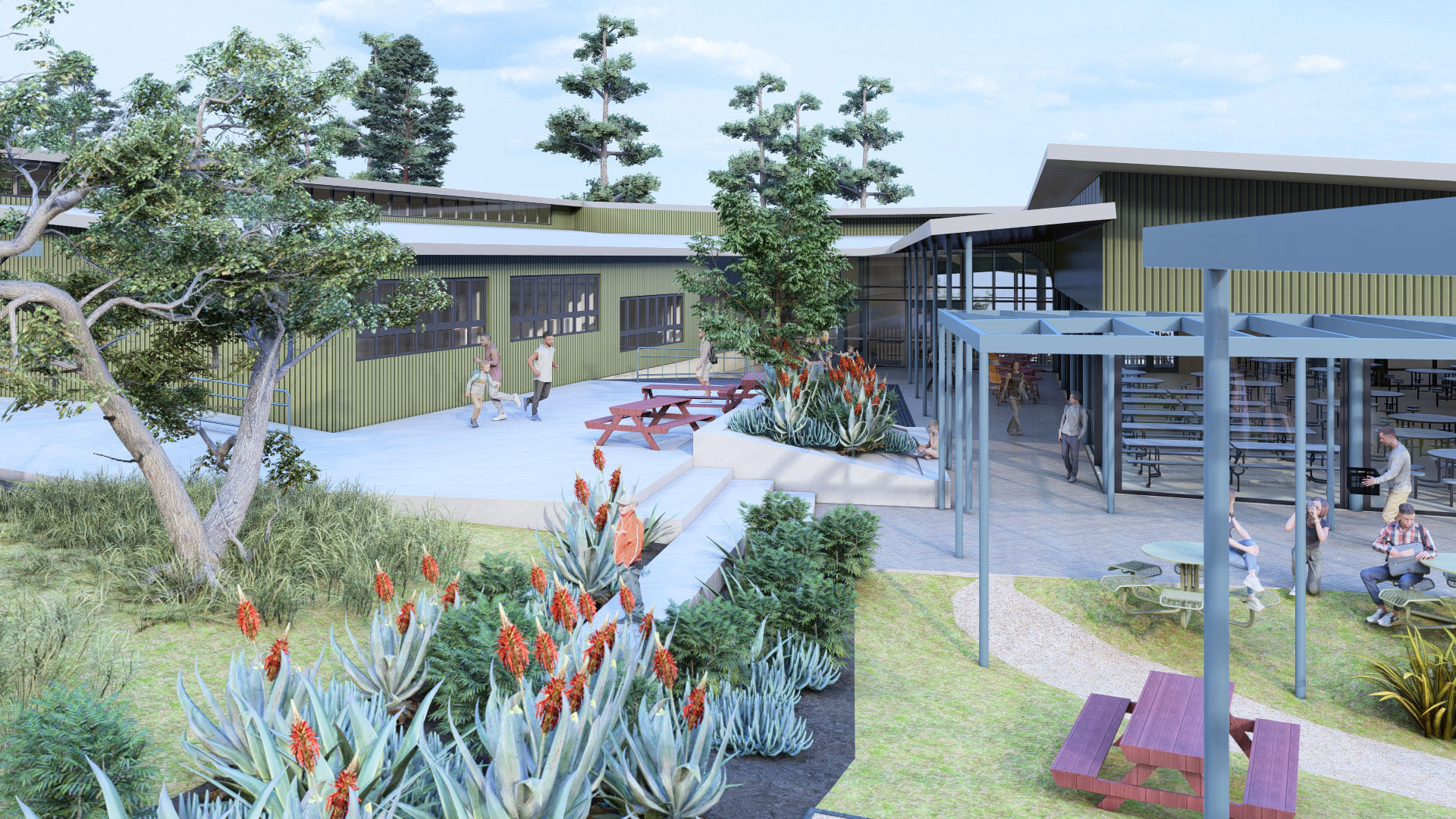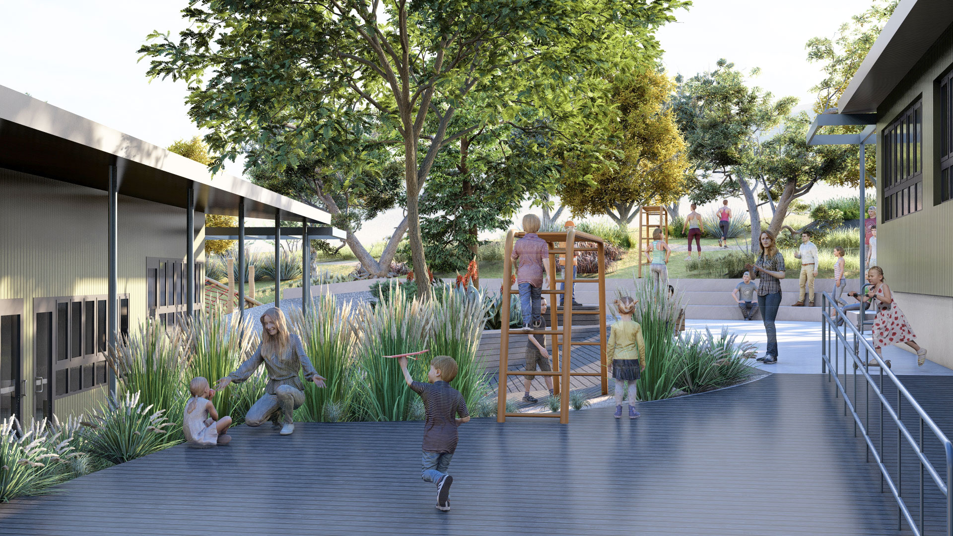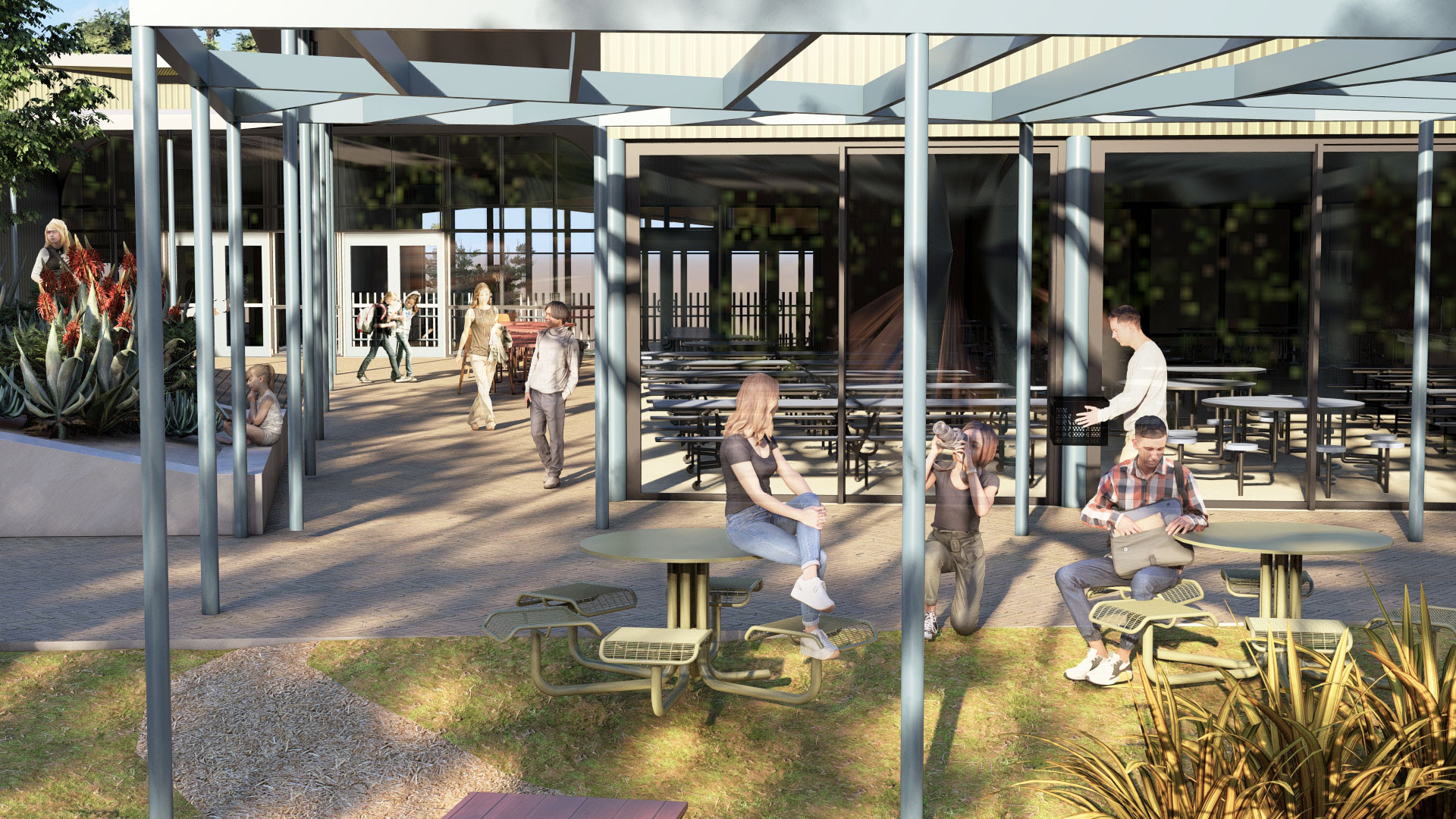 Los patios exteriores se integran como extensiones naturales del edificio, aportando luminosidad y reforzando el concepto de que «todos los espacios educan»