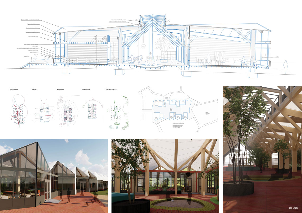 Las 3 pieles, Cubierta, Plataforma y Espacios de máxima temperie, dan una lectura orgánica del edificio, generan un impacto positivo en el medio ambiente y dan una sensación de pertenencia a quienes la habitan.